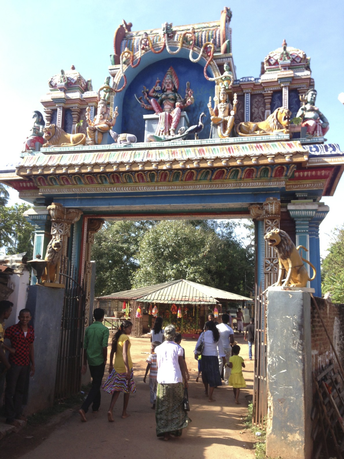 On the approach to the outskirts of the Western Coastal town of Chillaw I visited the impressive Hindu shrine at Kuddirupu. It is surrounded by a multitude of stalls selling offerings of flowers, fruits and cheap knick knacks. The temple itself is magnificent. I was treated to some pineapple by one stall holder and a devotee leaving the temple gave out fruit from a large platter and I gratefully accepted a pineapple before hopping back on to my bike.