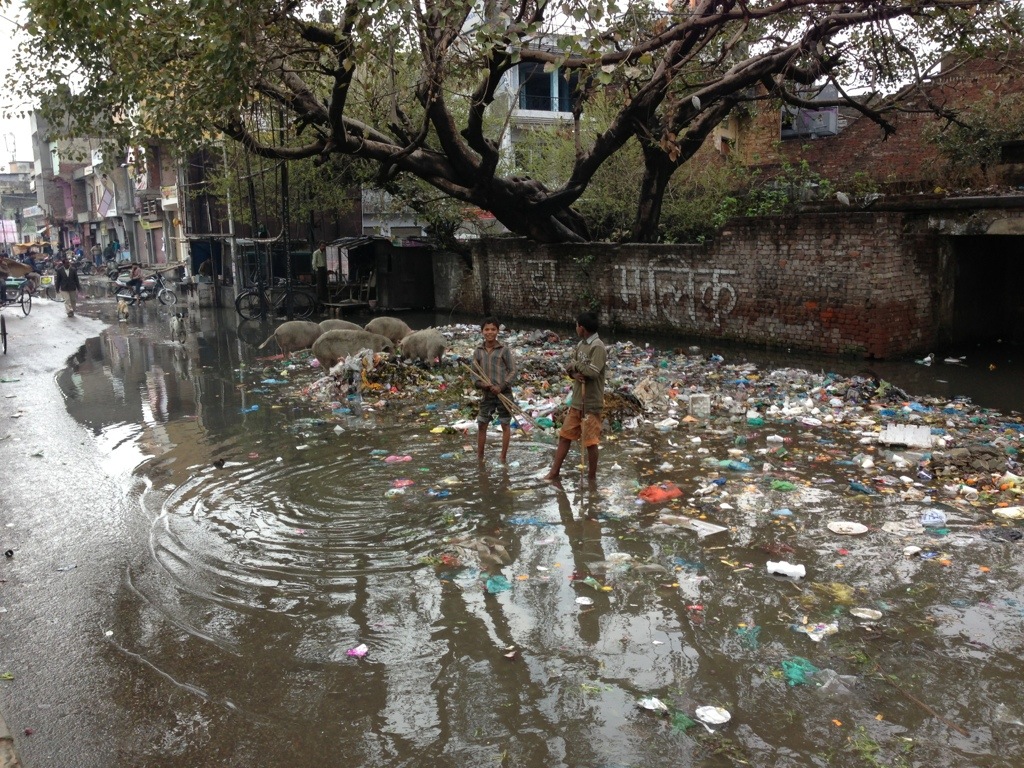 I made Hapur and desperately searched for some kind of lodging. After a bit of a search I found a hotel on the station road. It was expensive and a bit crummy. During the night a storm raged. I awoke to find the streets flooded.
