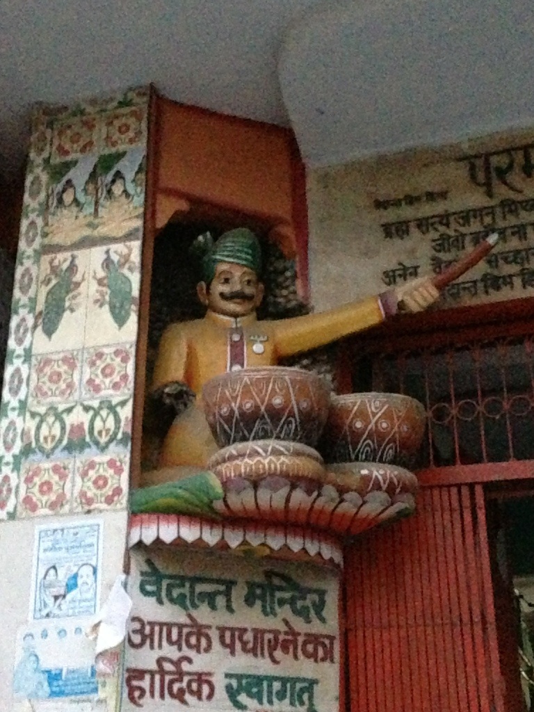 The Ganges is big business. The riverside was filled with pilgrim services; offerings, boat trips, ceremonies and shrines. Stalls provided food and religious items. Many sadhus or holy men wandered about. I bought one of them lunch. I watched as people immersed themselves in the Ganges and had a good walk around the town. At a temple devoted to Ganga I was invited in to the main courtyard and sat to chat with the temple elders.