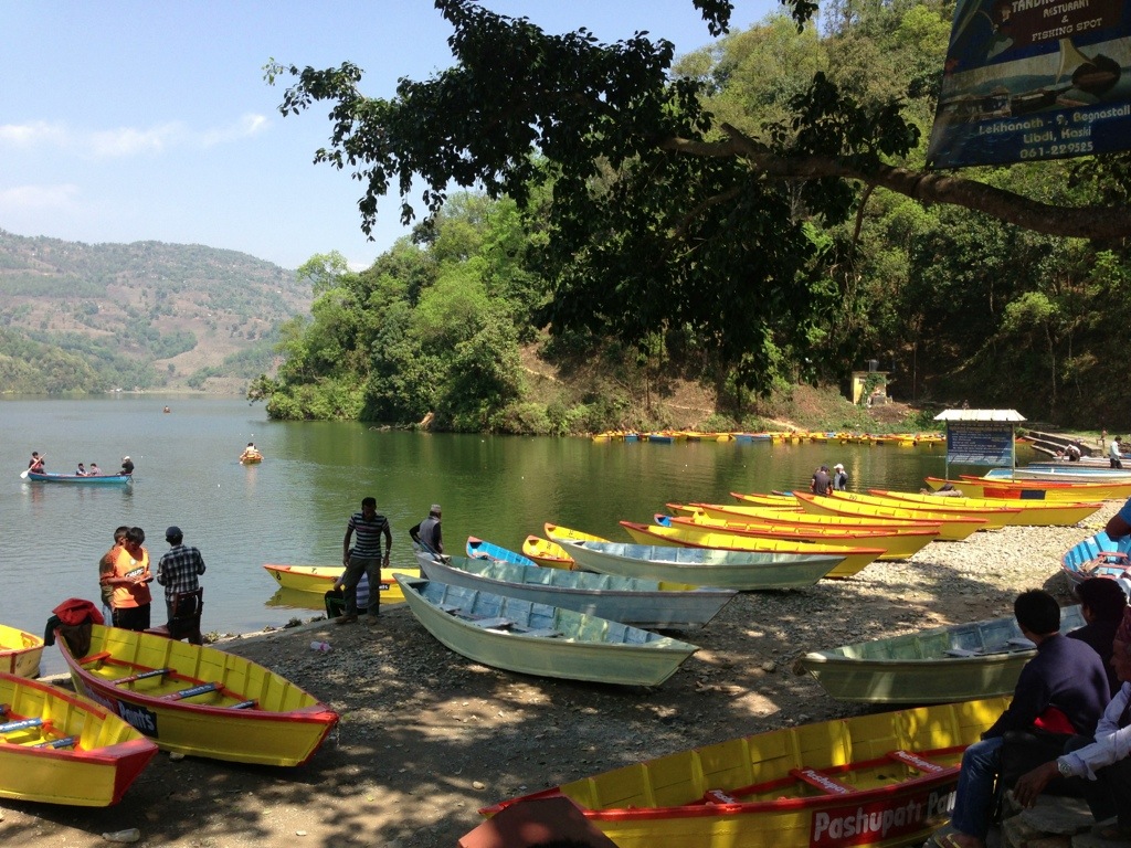 I estimated to take three days to travel the 120 miles to reach Kathmandu. As I cycled East out of Pokhara the road gradually dropped downwards. This worried me as it almost invariably means more of a climb later. I took a diversion at Lekhmath towards lakes Begnas and Rupa. I had been personally recommended to see lake Begnas and is a popular trip for tourists to make from Pokhara. Past a bridge and into a small town square, the road splits and one path leads up a steep hill towards lake Rupa. I took the left fork to lake Begnas. The lake was very beautiful. Local musicians played traditional folk songs to visitors by the shore. There are horses and rowing boats for hire. It is a great recreational spot for people from the city, towns and surrounding countryside.