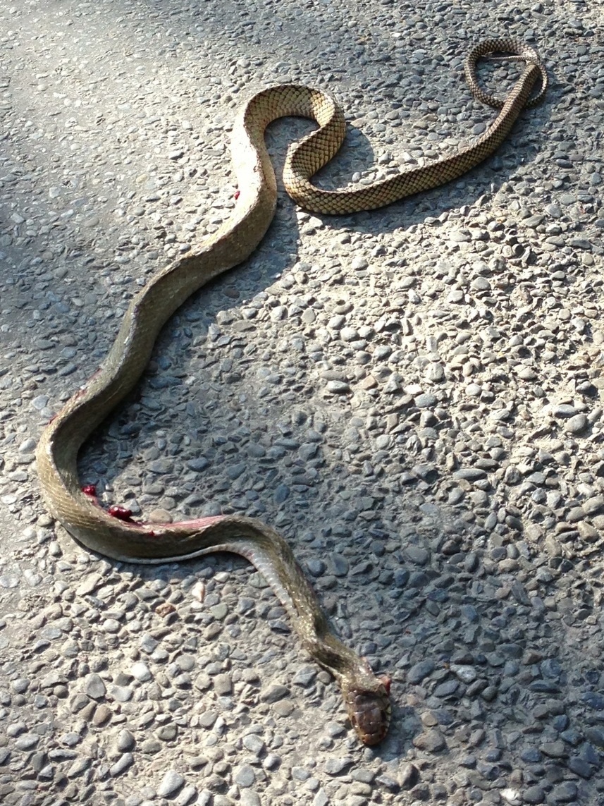 Returning to the Prithvi highway I wound my way around the hills. It was pleasant with pretty painted cottages and paddy fields alongside. I had seen a fair bit, if often unrecognisable, of road kill but for the first time had to steer my bike around a dead snake.