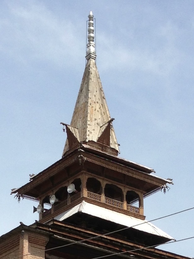 My ride to find Dal Lake became my first, albeit unintentional, tour of Srinagar. My route led me to the Jama Masjid mosque with its fine spired towers. Architectually quite unlike any mosque I had seen before and although modern, it would not have looked out of place in Nepal.