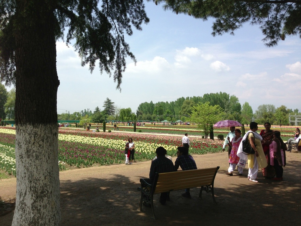 Another day and following a circuit of the lake I visited the Tulip Garden situated on the East side. During March and April the blooming tulips are a big draw for visiting Indian tourists. I must say I was less than impressed but the combination of mountains and flowers is very attractive. I also had a pleasant lunch of samosas and a flat bread with a sweet yellow filling provided by a local village food stall.