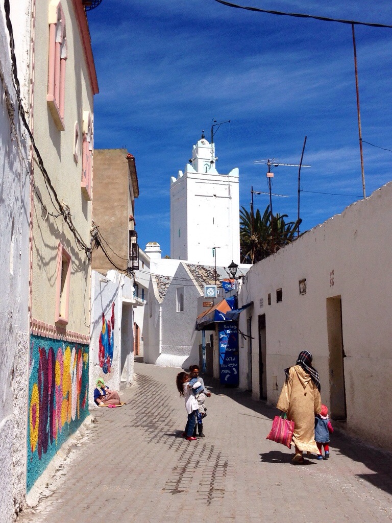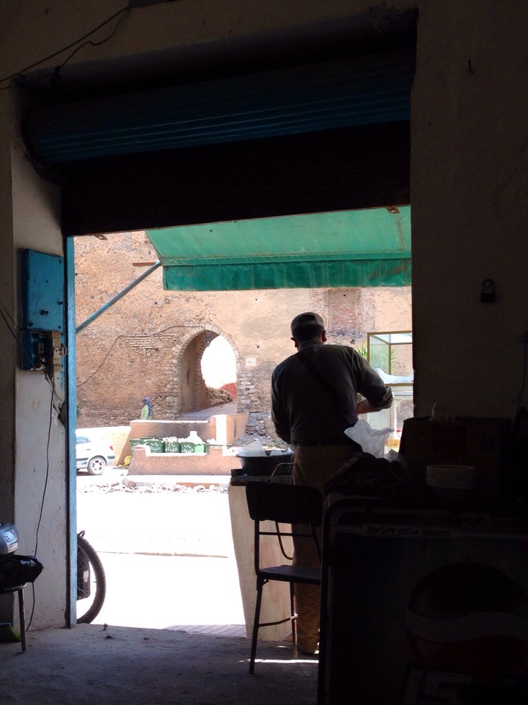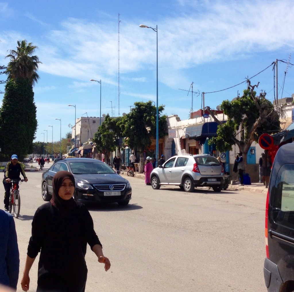 I got a good start the next day. The road began dropping downhill towards a bridge over the Oum er Rbia river. The old walls of the Portuguese fort stand proudly alongside the river which empties within a few miles into the sea. Over the bridge, uphill and quickly into the town, I grabbed a fish filled bun from a food stall opposite an entrance into the medina.