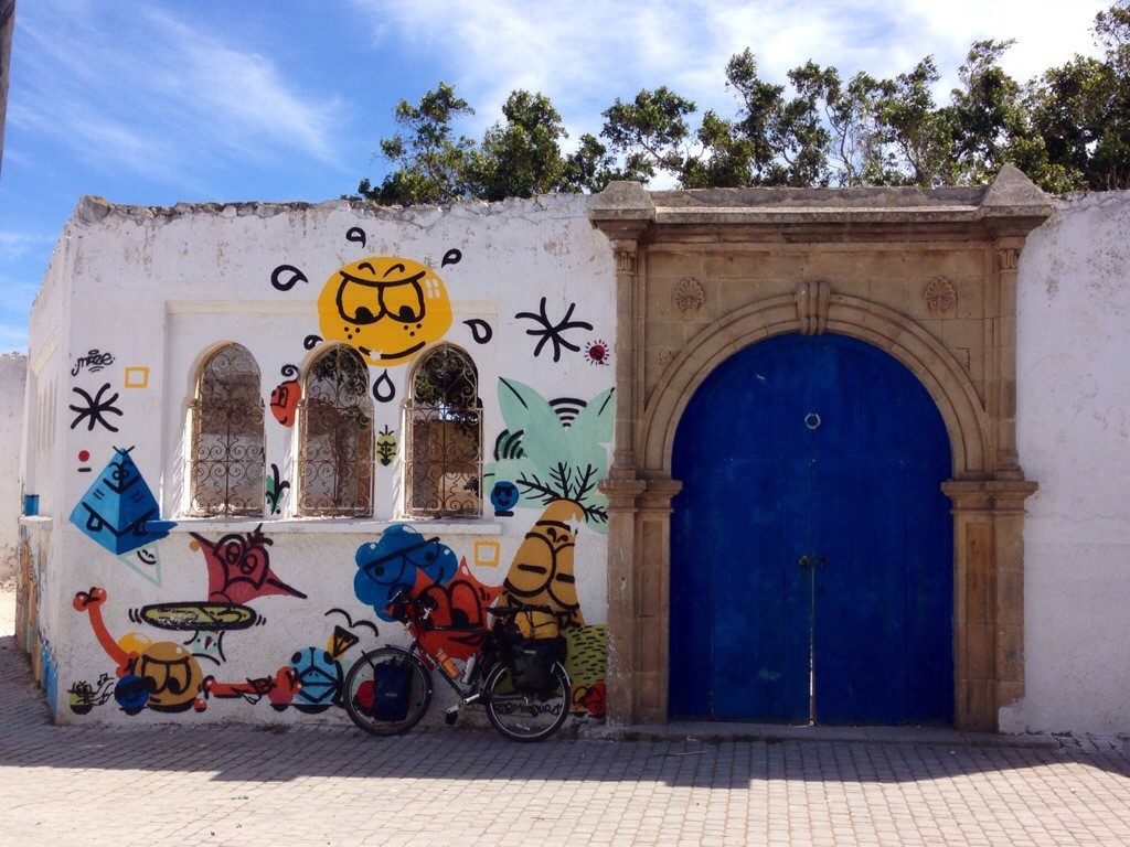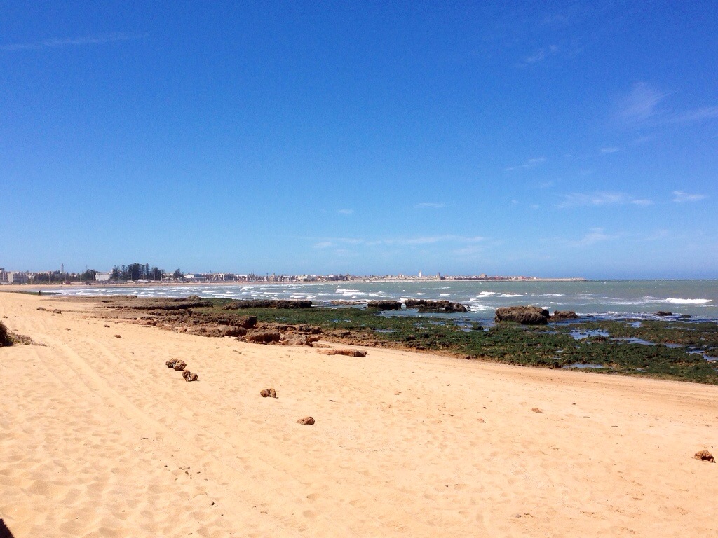 I cycled along the extensive beachfront past beach huts and fish restaurants. The town beach iwas filled with teams playing football. I quickly picked my way past, into the walled Medina and then out onto a long walled jetty that provided harbour for a fleet of fishing boats.