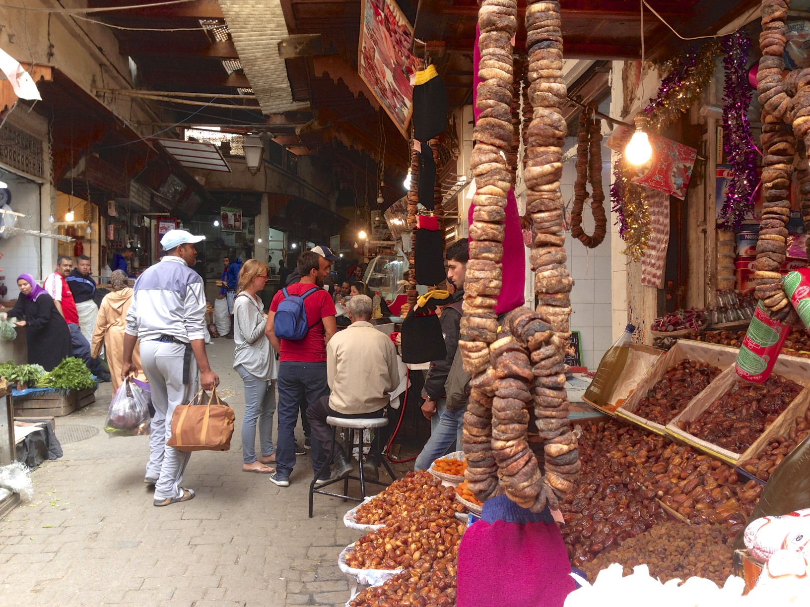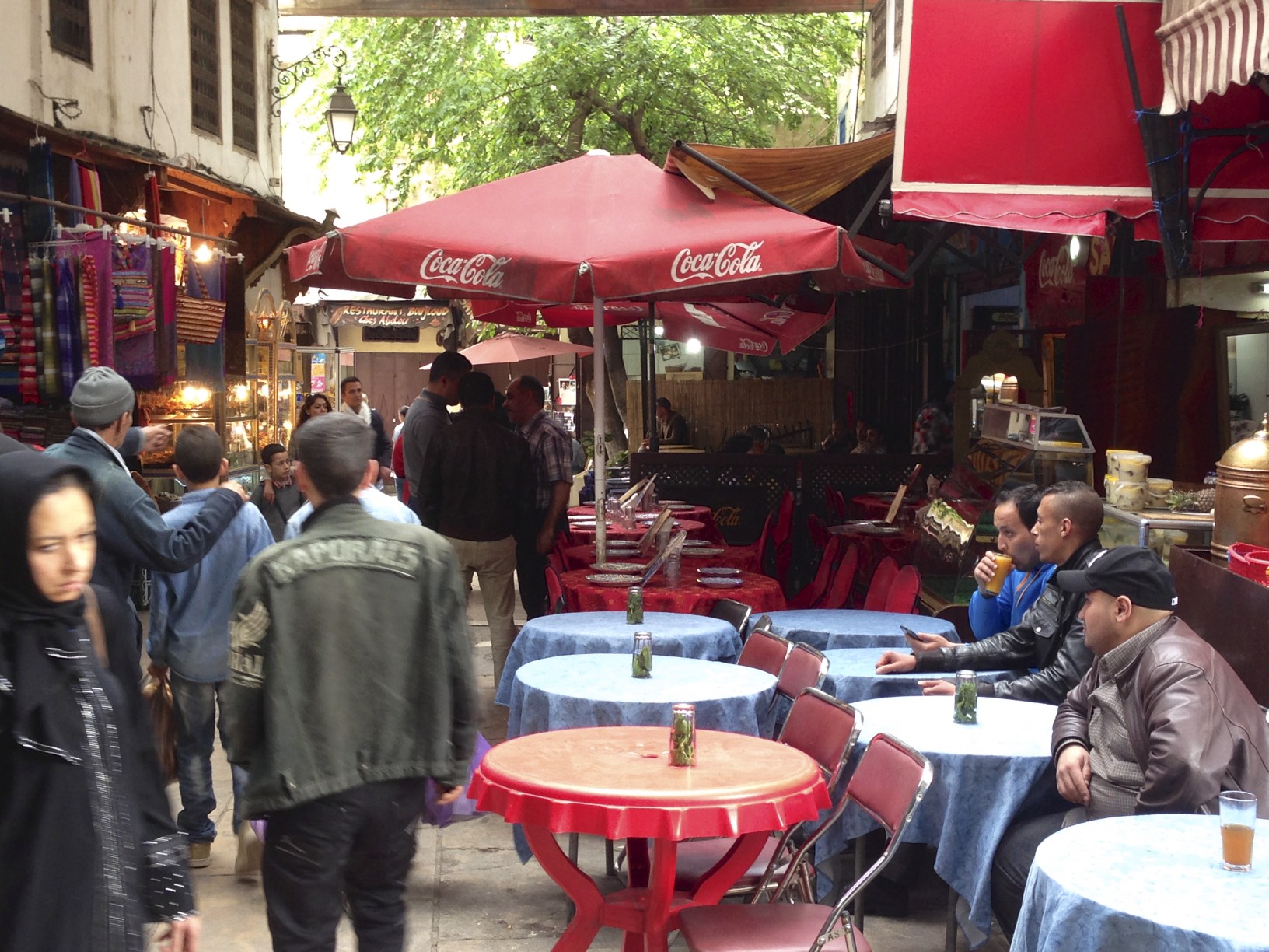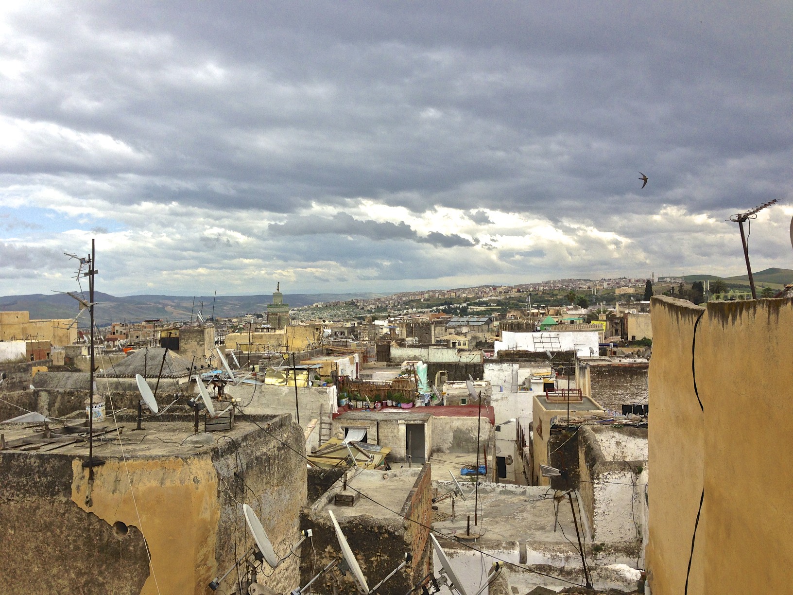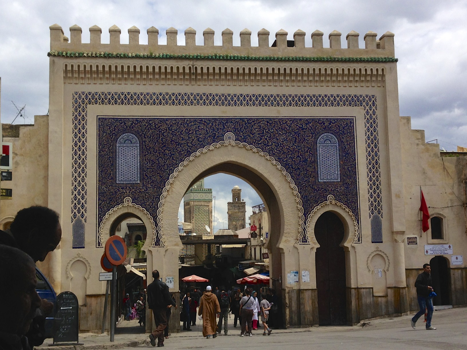 The Hotel Cascade figures in every guide book as the ‘grandaddy’ of budget hotels with an excellent position to explore the medina and unmatched roof terrace with good views. With such publicity it is oversubscribed by backpackers. Once open I peered in the doorway. The stairs are narrow and it looked quite unsuitable for carrying my bike. As it turned out there were no rooms available. Wearily I began the arduous task of finding somewhere suitable to ‘hang my coat’. Round and round I tramped. There are lots of Riads tucked away down passageways but the thought of forking out for some overblown boutique hotel kept me from making enquiries. Eventually I found myself at the gateway to the old Kasbah en Nouah a few minutes walk up from the Cascade Hotel. I was suddenly met with a flashing smile and an invitation to look at his ‘hotel’.. My knee-jerk reaction to such suggestions is usually a polite ‘no thanks’ but on this occasion I thought I would check it out. Through the 15th century gate and immediately on the left was the ‘Pension El Kasbah’. This man was the owner.. and his father had a small food shop opposite. It was delightful and cheap! Traditional Moroccan furnishings, fabulous hot shower, rooftop balcony and good facilities. Initially I was offered a slightly pokey room without a window but then negotiated a lovely double on the first floor close to the wifi router. Lady luck had smiled on me and I had landed very nicely in Fes.