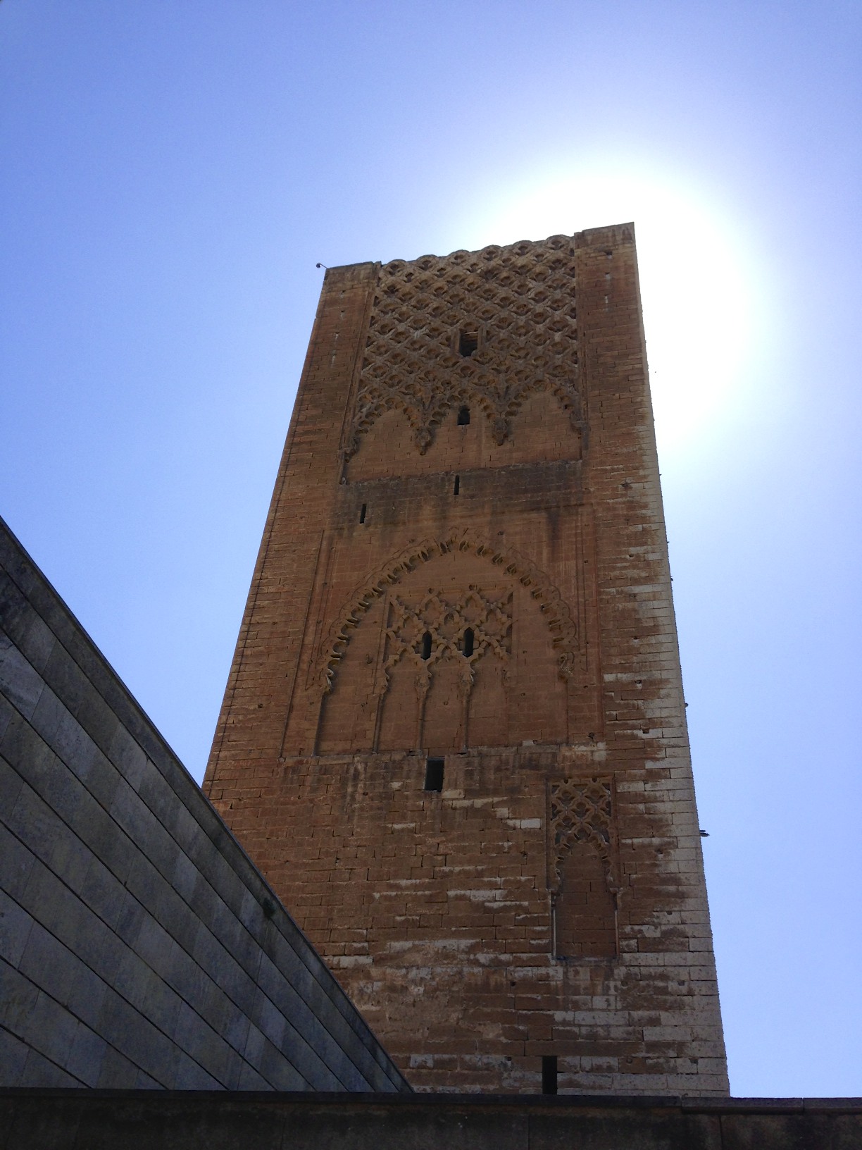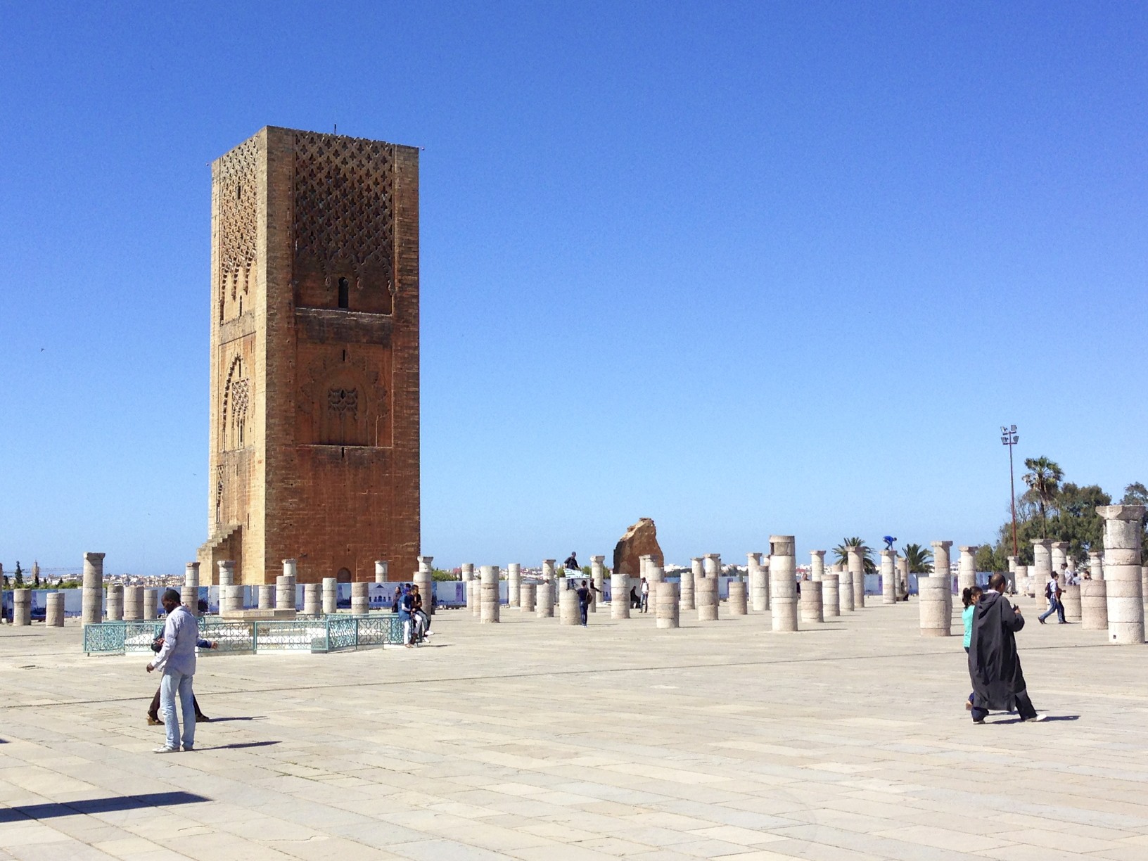 The Hassan mosque was an overambitious project that was begun in the late 12th Century by the Almohad Sultan Yacoub el Mansour. Its construction slowed even further after his death but then was partially destroyed by the Great Earthquake of 1755. Its minaret still dominates Rabat’s skyline. Behind lies the Mausoleum of King Mohammed V whose body was interred there following his death in 1961.The park next to the Minaret is a popular place for skateboarding.