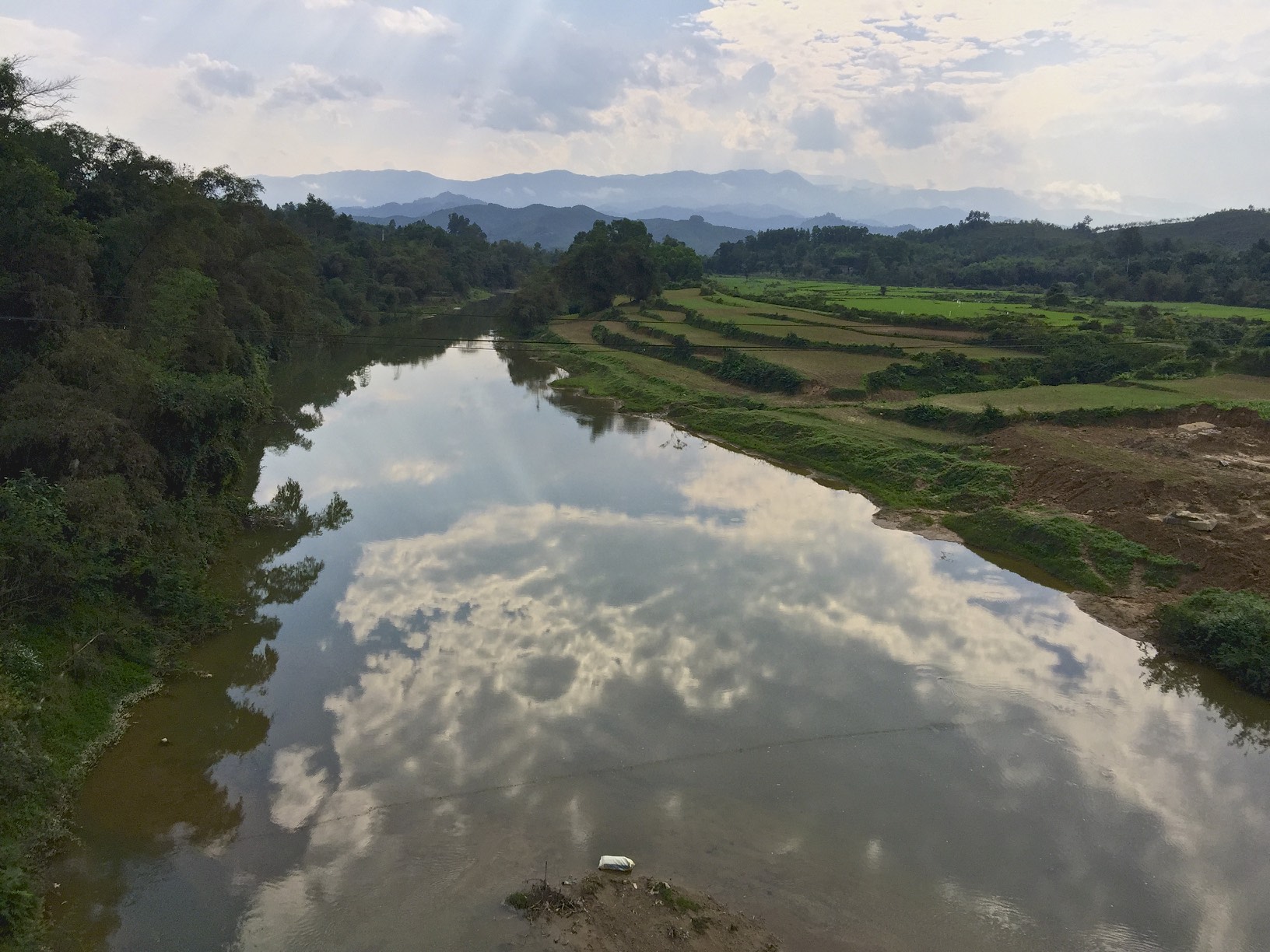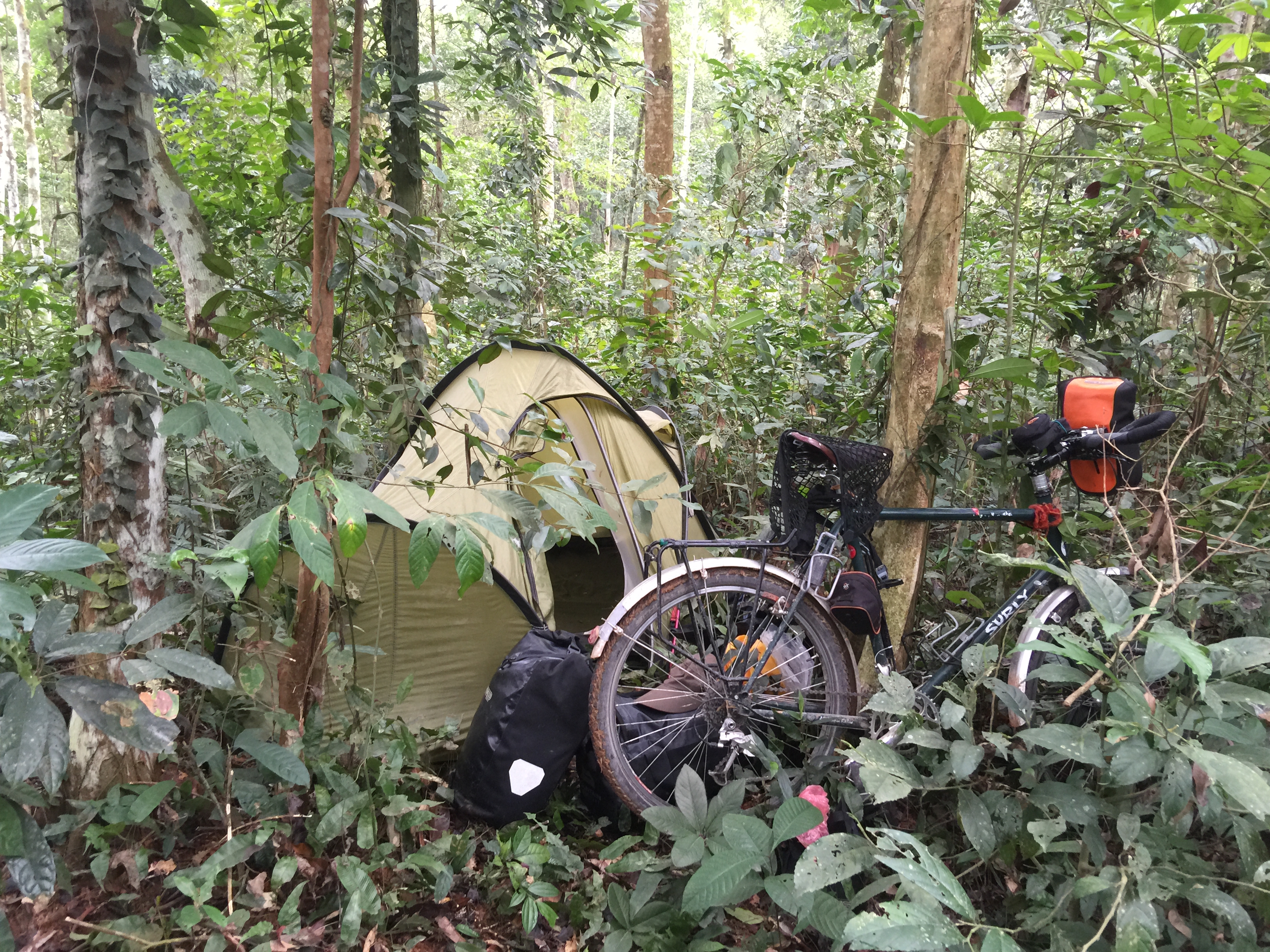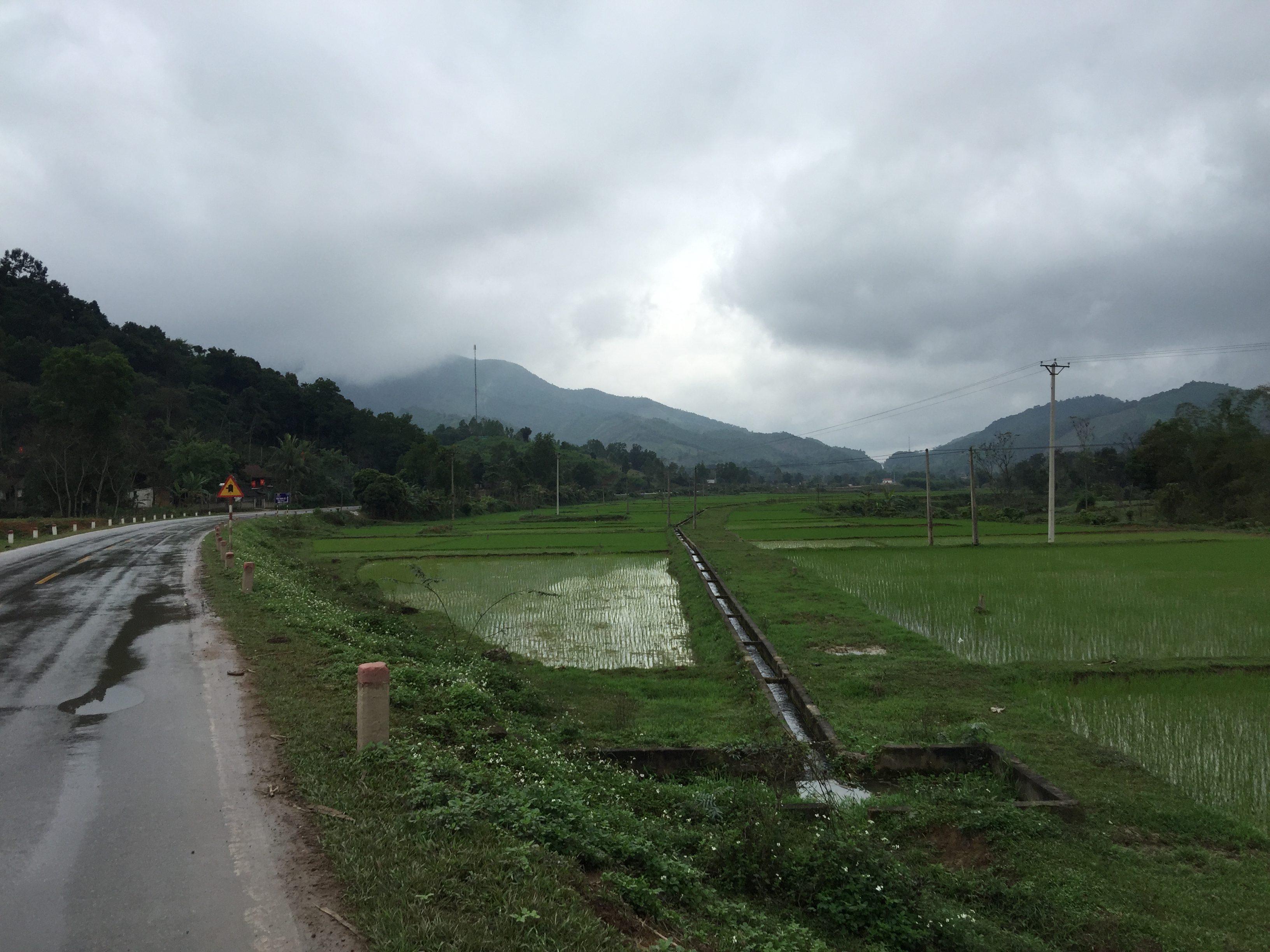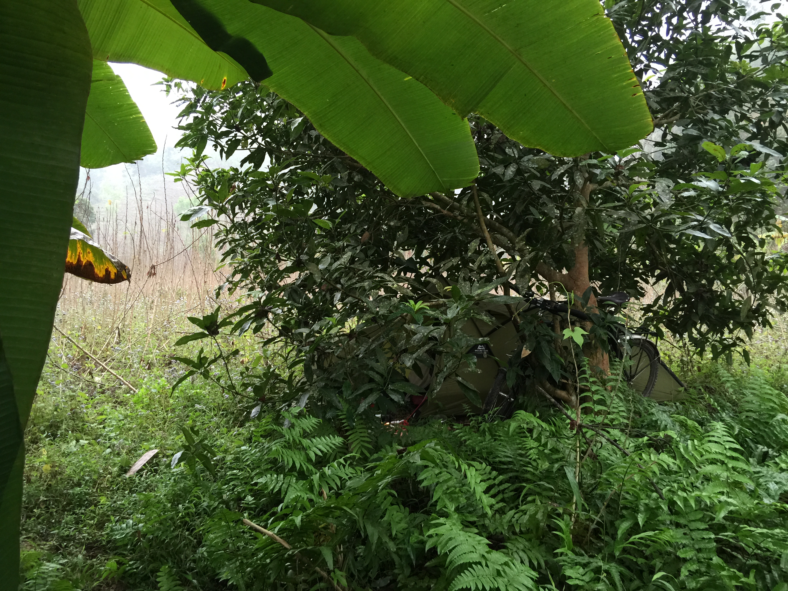 Over the next few days I cycled 200 miles South on the HCMH passing through Thanh Hoa, Nghe An and Ha Tinh provinces. The highlight of this was all the wonderful friendly people that I met along the way. The weather was a little mixed and got caught in a major downpour. I had stopped to make coffee when the rain fell very heavily. People from a house nearby rushed across with umbrellas to help and insisted I take shelter in their home. The generosity of spirit expressed by everyone I met along the route was quite remarkable. Wild camping was relatively easy although I did take a room (and very welcome shower) at a hotel in Yen Cat. One magical night whilst camping in a banana grove my tent was surrounded by dancing fireflies.