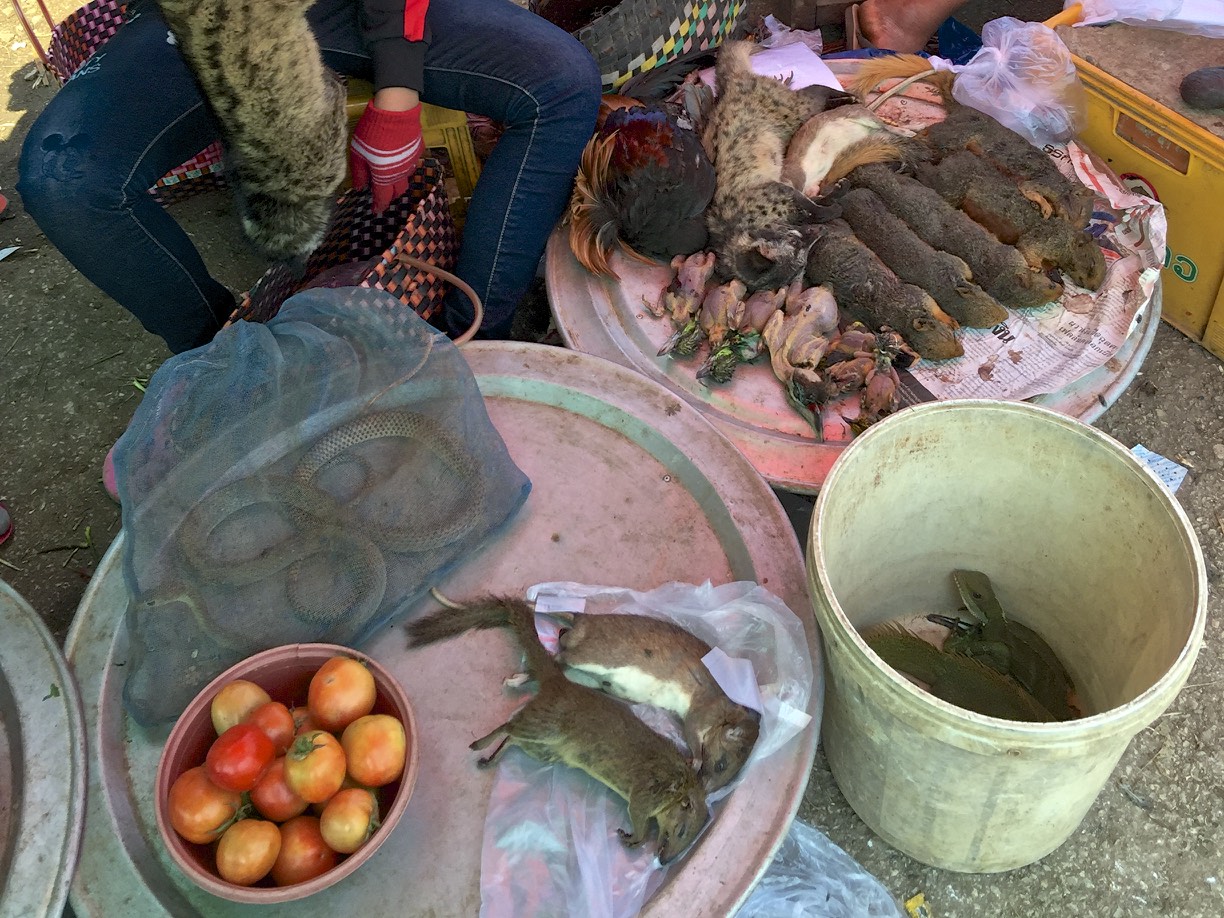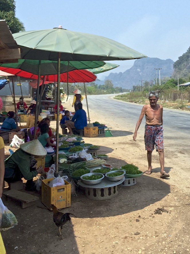 Following the AH131 towards the provincial capital of Thakhek I stopped for lunch at a market. The range of local food was very different! Snakes, frogs and variety of small mammals were for sale. But I was perfectly happy with noodles for lunch..